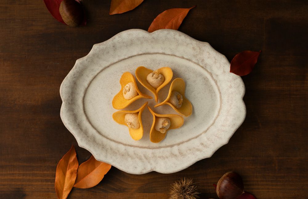 ルフル(マロン)秋限定フレーバー、マロンはマロンクリームにラム酒を効かせて、濃厚な栗の味わいに仕上げました。 -