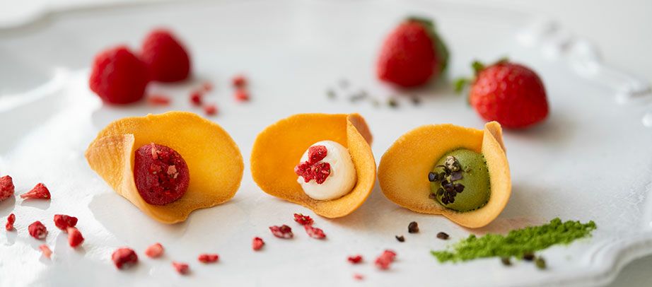 ルフル(ベリーベリー)苺とラズベリーをミックスしたみずみずしい風味のクリームを挟み、甘酸っぱく仕上げました。ぱっと華やぐ鮮やかなクリームです。 -