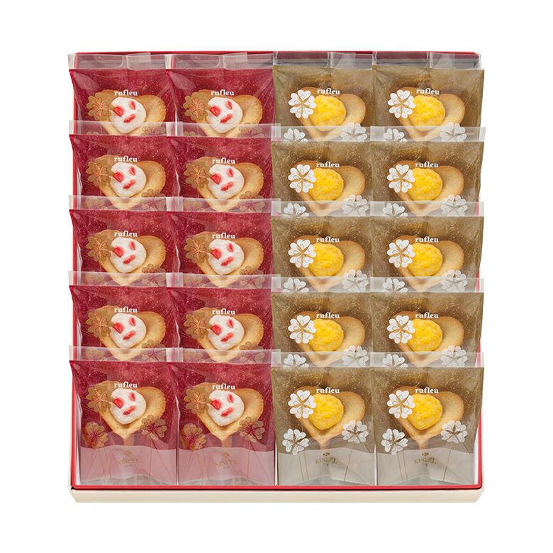 お花のかたちのかわいいラングドシャの中に、ふんわりとしたクリームをはさんだ「ルフル」