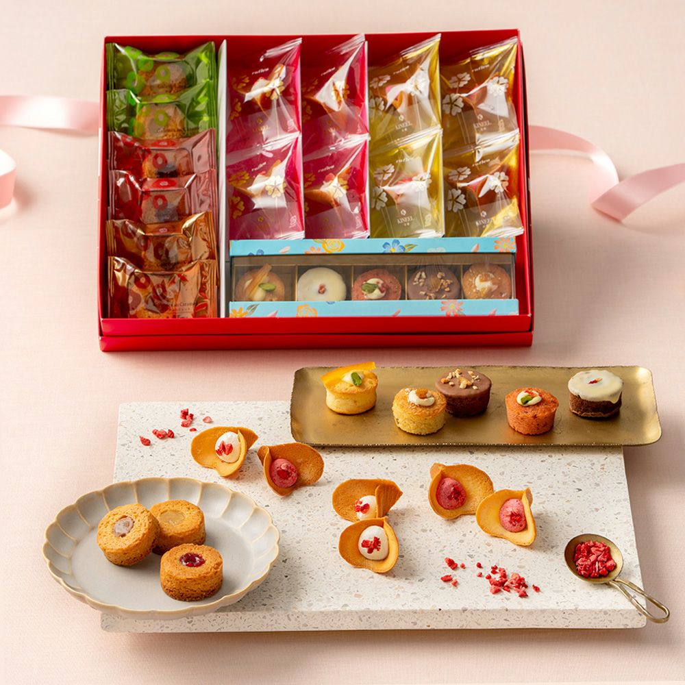 花咲くラングドシャ「ルフル」華やかに広がる甘酸っぱい味わいが魅力の「ベリーベリー」を定番のバニラ・抹茶とともにお詰めしました。