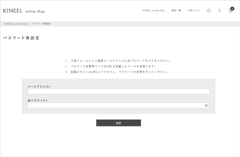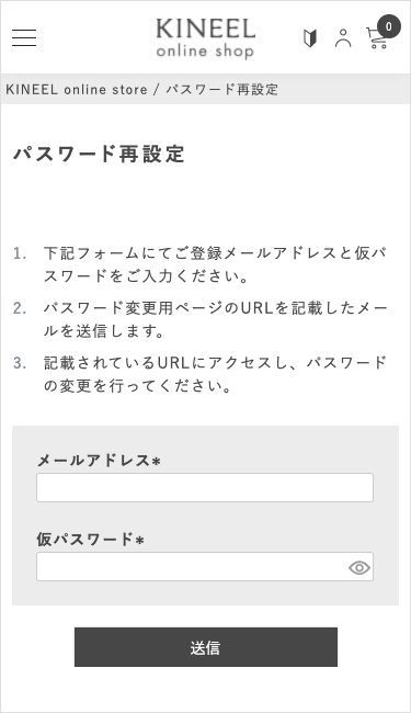 3.「【KINEEL 公式オンラインショップ】パスワードのお問い合わせ」という件名のメールが届きますので、