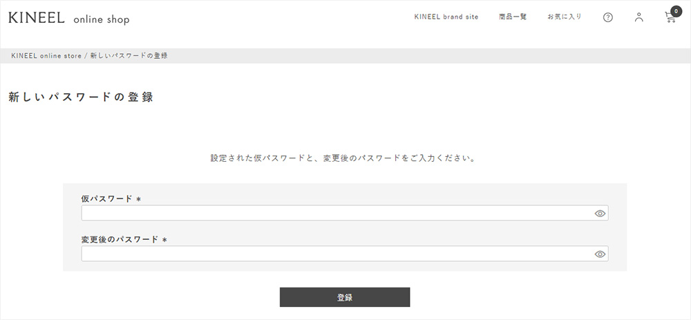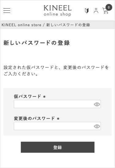 メールに記載のURLにアクセスしていただき、先ほど設定していただいた「仮パスワード」と「変更後のパスワード」をご入力ください。